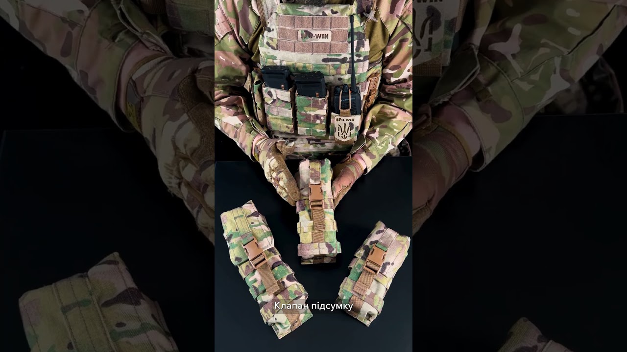 Один магазин, закритий кришкою на липучці — надійно утримується в підсумку при динамічному навантаженні.