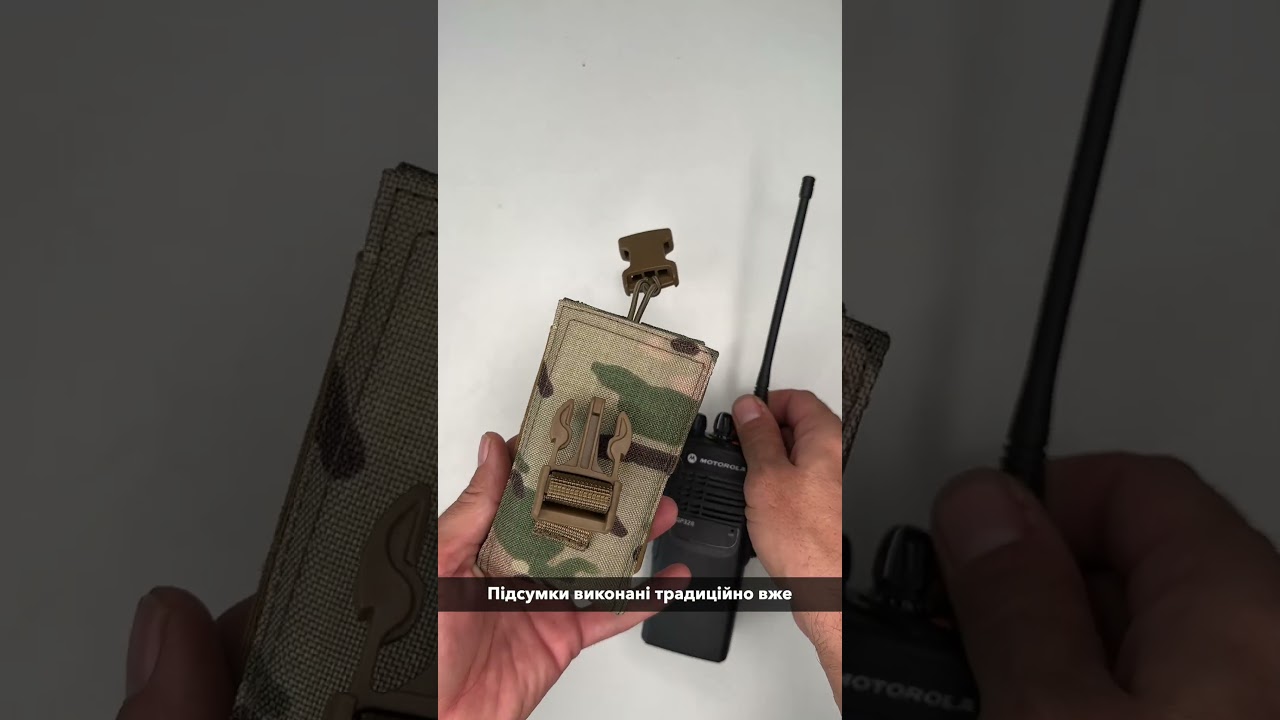 Бокові стінки підсумку обладнані еластичною резинкою, яка надійно фіксує рацію в підсумку та дозволяє використовувати рації різних моделей.